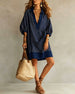 Robe Décontracté Col V Manche Courte Denim