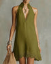SPÉCIFICATIONS Style: Décontracté Matériel: 80% Coton 20% Lin Type de la robe: A-Line Longueur de la robe: Au-dessus du genou Forme du col: Col rond Type du dessin: Couleur pure Type de la manche: Manches régulières Longueur de la manche: Manches courtes Détails: Poche,Fermeture éclair Type d'ajustement: Habituel Saison: Printemps,Été Occasi...