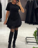 Robe Col Rond Paillettes Fines À La Mode