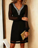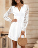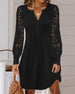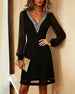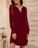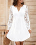 Robe à manches en dentelle et col en V de couleur unie