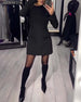 SPÉCIFICATIONS Style: Chic Matériel: Mélange de coton Type de la robe: Robe jambe droite Longueur de la robe: Au-dessus du genou Forme du col: Col rond Type du dessin: Couleur pure Type de la manche: Manches régulières Longueur de la manche: Manches longues Détails: Forage à chaud Type d'ajustement: Habituel Saison: Automne,Hiver Occasion: Quo...