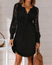Robe tendance en dentelle à boutons et revers de couleur unie