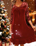 NOUV Icon1 Robe Manches Longues Sequins Velours Volant Ourlet