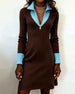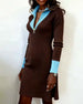 Robe Manches Longues Col En V Contrasté Tricot