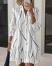 SPÉCIFICATIONS Style: Décontracté Matériel: Mélange de coton Type de la robe: A-Line Longueur de la robe: Au-dessus du genou Forme du col: Col à revers Type du dessin: Rayure,Ondulation Type de la manche: Manches régulières Longueur de la manche: Manches longues Détails: Boutons Type d'ajustement: Habituel Saison: Printemps,Automne Occasion: Q...
