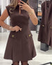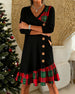 Robe Bouton Revers Col V Bloc de Couleur Tendance