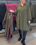 SPÉCIFICATIONS Style: Décontracté Matériel: Mélange de coton Type de la robe: Robe jambe droite Longueur de la robe: Longueur du genou Forme du col: Col en V Type du dessin: Couleur pure Type de la manche: Manches régulières Longueur de la manche: Manches longues Détails: Boutons Type d'ajustement: Habituel Saison: Automne,Hiver Occasion: Quot...