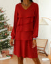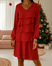 SPÉCIFICATIONS Style: Décontracté Matériel: Mélange de coton Type de la robe: Robe jambe droite Longueur de la robe: Au-dessus du genou Forme du col: Col en V Type du dessin: Couleur pure Type de la manche: Manches à gigot Longueur de la manche: Manches longues Détails: Volants Type d'ajustement: Habituel Saison: Automne,Hiver Occasion: Quot...