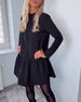 Robe Élégante Unie À Col Rond Et Jupe Évasée