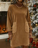 SPÉCIFICATIONS Style: Décontracté Matériel: Velours Type de la robe: Robe jambe droite Longueur de la robe: Longueur du genou Forme du col: Col roulé Type du dessin: Couleur pure Type de la manche: Manches régulières Longueur de la manche: Manches longues Détails: Poche Type d'ajustement: Habituel Saison: Automne,Hiver Occasion: Quotidien Con...