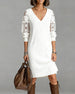 SPÉCIFICATIONS Style: Décontracté Matériel: Mélange de coton Type de la robe: Robe jambe droite Longueur de la robe: Longueur du genou Forme du col: Col en V Type du dessin: Couleur pure Type de la manche: Manches régulières Longueur de la manche: Manches longues Détails: Dentelle Type d'ajustement: Habituel Saison: Automne,Hiver Occasion: Quo...