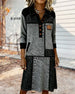 SPÉCIFICATIONS Style: Décontracté Matériel: Mélange de coton,Cuir artificiel Type de la robe: A-Line Forme du col: Col à revers Type du dessin: Bloc de couleur Type de la manche: Manches régulières Longueur de la manche: Manches longues Détails: Couture de matériau,Boutons Type d'ajustement: Habituel Saison: Automne,Hiver Occasion: Quotidien C...