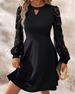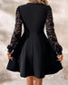 SPÉCIFICATIONS Style: Chic Matériel: Dentelle,Tricotage Type de la robe: A-Line Longueur de la robe: Au-dessus du genou Forme du col: Col rond Type de la manche: Manches bouffantes Longueur de la manche: Manches longues Détails: Couture de matériau,Creusé Type d'ajustement: Habituel Saison: Automne,Hiver Occasion: Quotidien Contenu du colis: 1...
