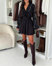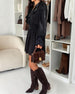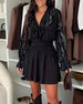 SPÉCIFICATIONS Style: Décontracté Matériel: Mélange de coton Type de la robe: A-Line Longueur de la robe: Au-dessus du genou Forme du col: Col en V Type du dessin: Paillettes,Couleur pure Type de la manche: Manches à volants Longueur de la manche: Manches longues Détails: Volants Type d'ajustement: Ample Saison: Automne,Hiver Occasion: Quotidi...