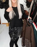 Robe Col Rond Manches Longues À Paillettes Patchwork