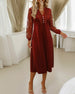 SPÉCIFICATIONS Style: Décontracté Matériel: Mélange de coton,Gaze Type de la robe: Robe jambe droite Longueur de la robe: Longueur du genou Forme du col: Col en V Type du dessin: Couleur pure Type de la manche: Manches régulières Longueur de la manche: Manches longues Type d'ajustement: Habituel Saison: Automne,Hiver Occasion: Quotidien Conte...