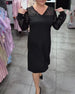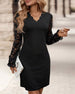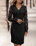 SPÉCIFICATIONS Style: Élégant Matériel: Mélange de coton Type de la robe: Robe jambe droite Longueur de la robe: Longueur du genou Forme du col: Col en V Type du dessin: Couleur pure Type de la manche: Manches régulières Longueur de la manche: Manches longues Détails: Dentelle Type d'ajustement: Habituel Saison: Automne,Hiver Occasion: Quotidi...