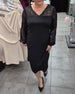 Robe Grande Taille À Col Drapé Et Manches Longues