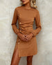 SPÉCIFICATIONS Style: Décontracté Matériel: Mélange de coton,Paillettes Type de la robe: Robe moulante Longueur de la robe: Au-dessus du genou Forme du col: Col rond Type du dessin: Couleur pure Type de la manche: Manches régulières Longueur de la manche: Manches longues Détails: Fente Type d'ajustement: Habituel Saison: Automne,Hiver Occasion...