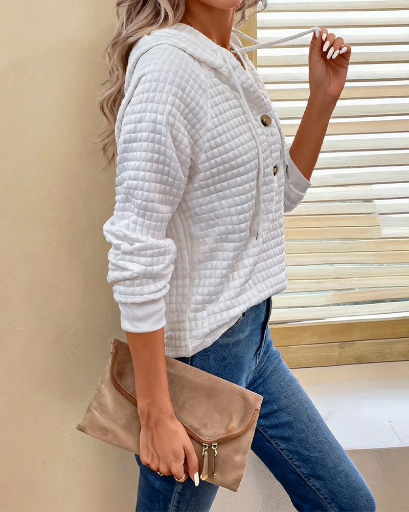 Sweat-shirt décontracté à capuche et empiècements gaufrés