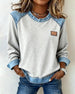 Sweat-shirt élégant en patchwork de denim à manches longues