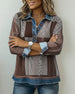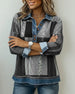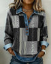 Sweat-shirt élégant en patchwork de denim à manches longues