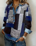 Blouse Élégante Unie À Détails Patchwork Et Col V