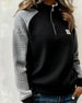 Sweat-shirt à col rond en peluche patchwork à carreaux