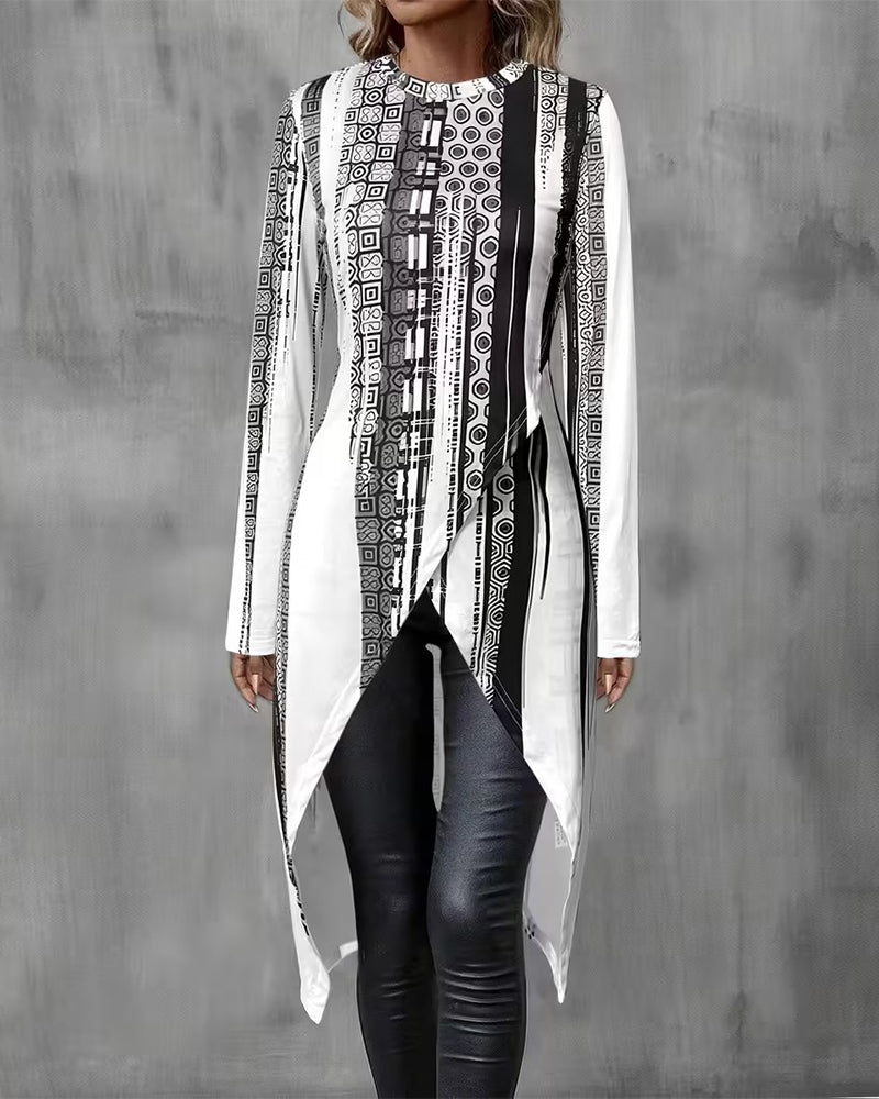 T-shirt imprimé avec fermeture éclair à manches courtes