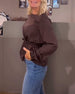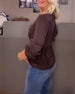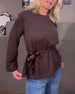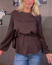Chemisier tendance à manches lanternes et col en V de couleur unie