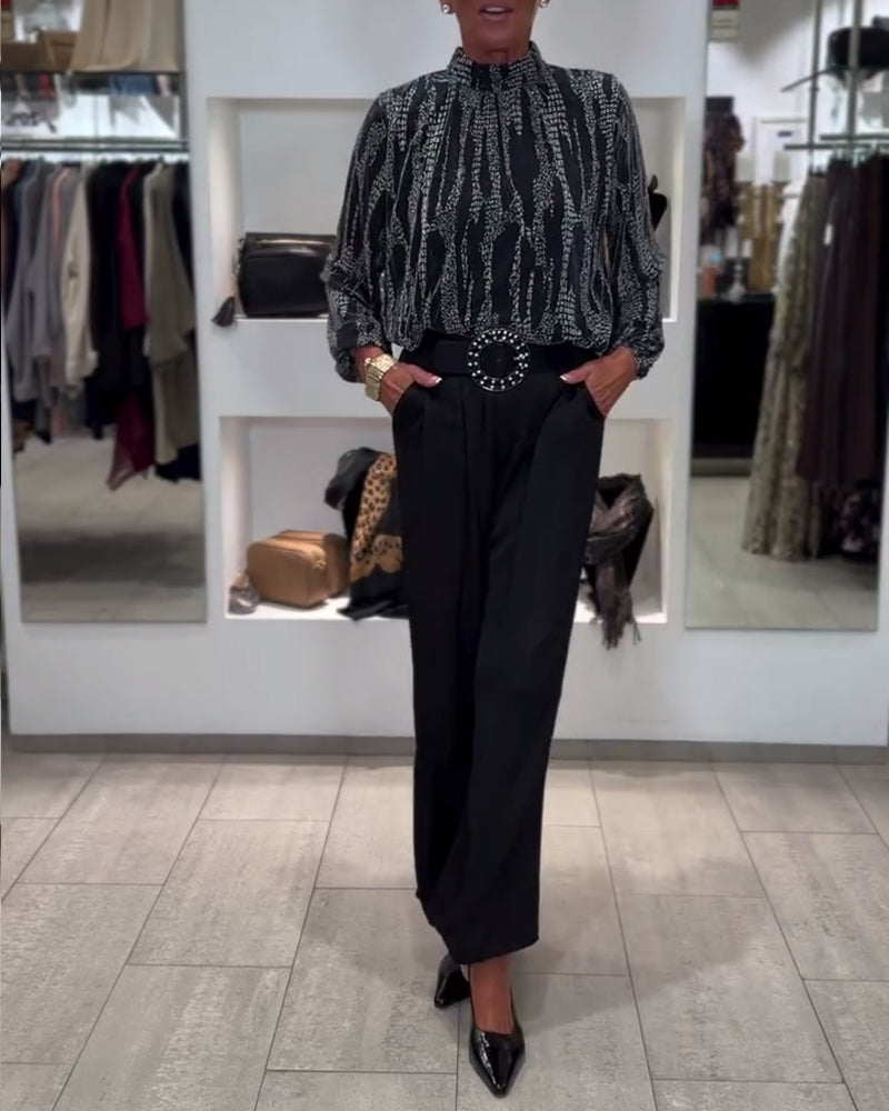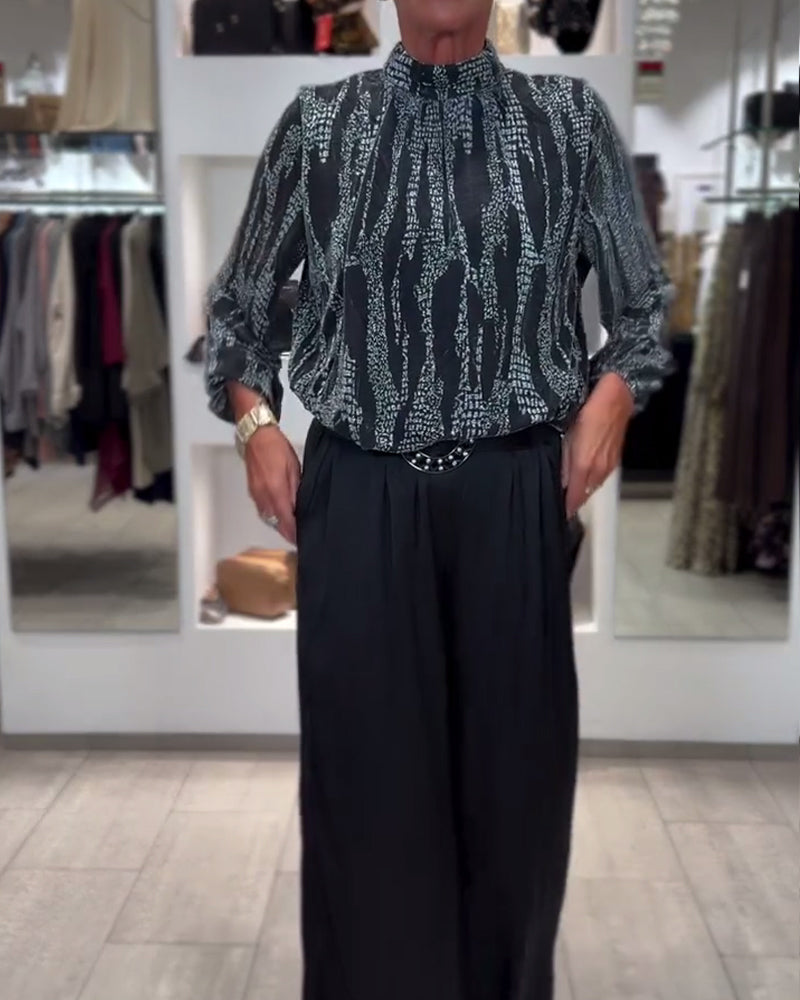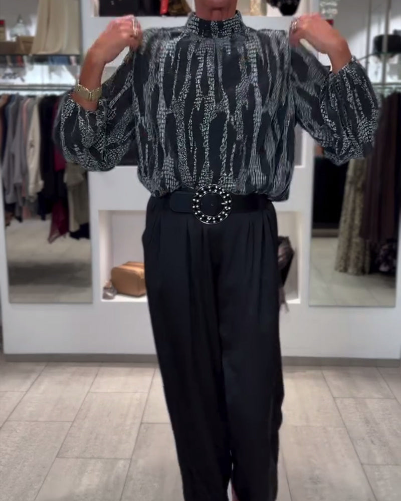 NOUV Icon1 Blouse Tendance Demi-Col Roulé Imprimé