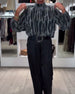 Chemise Scintillante À Col À Revers Et Manches Longues