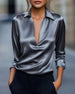 Chemise Scintillante À Col À Revers Et Manches Longues