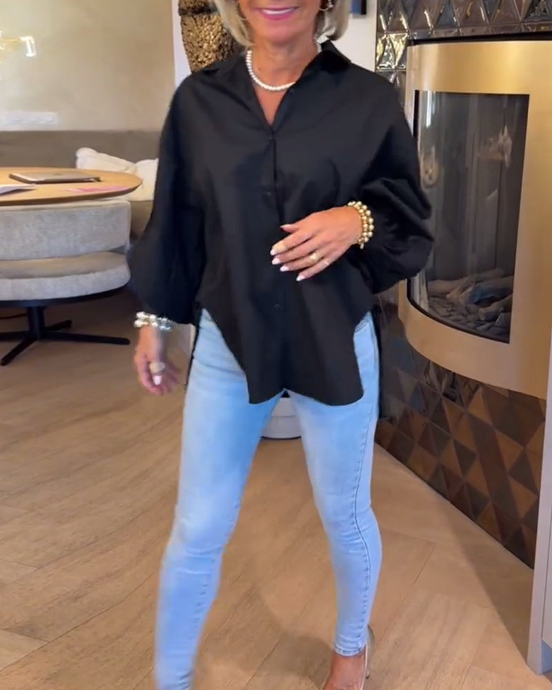 Chemise décontractée fendue à revers de couleur unie
