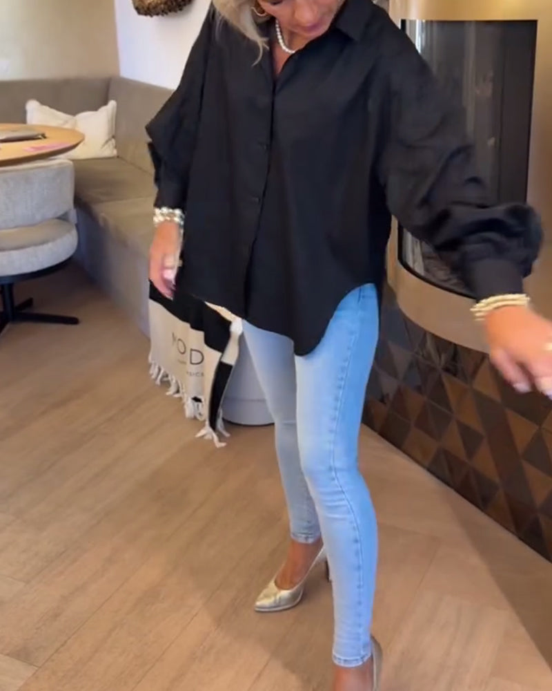 Chemisier ample de couleur unie à manches longues