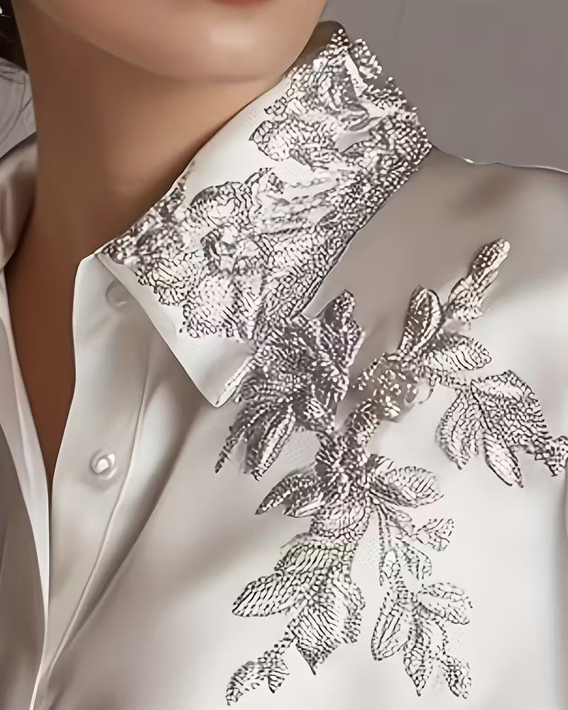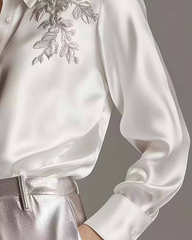 Chemise Scintillante À Col À Revers Et Manches Longues