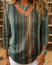Haut Col En V Coloré Imprimé Rayures Verticales