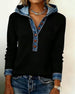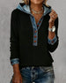 Sweat-shirt élégant en patchwork de denim à manches longues