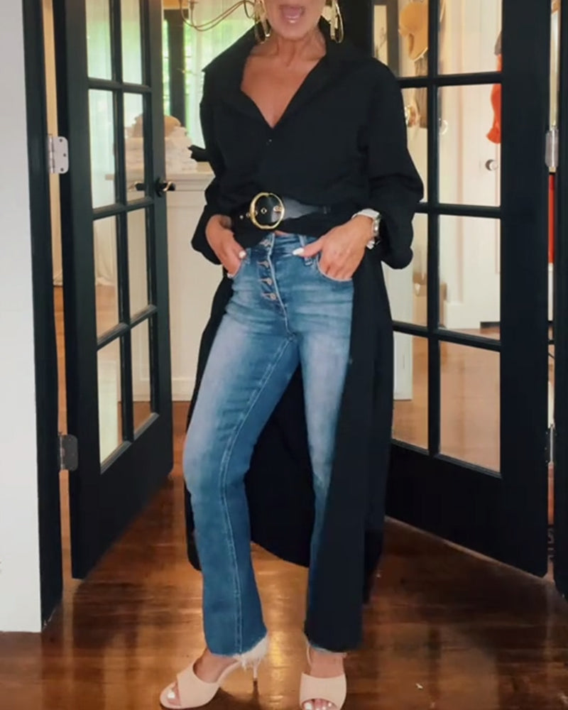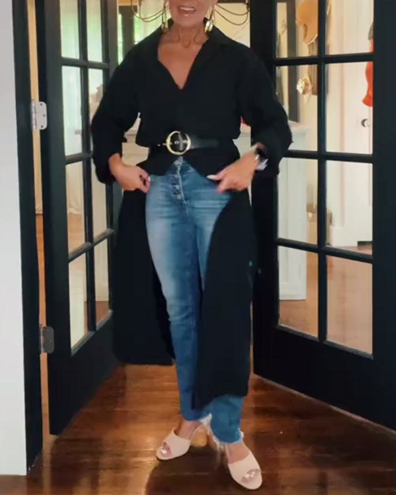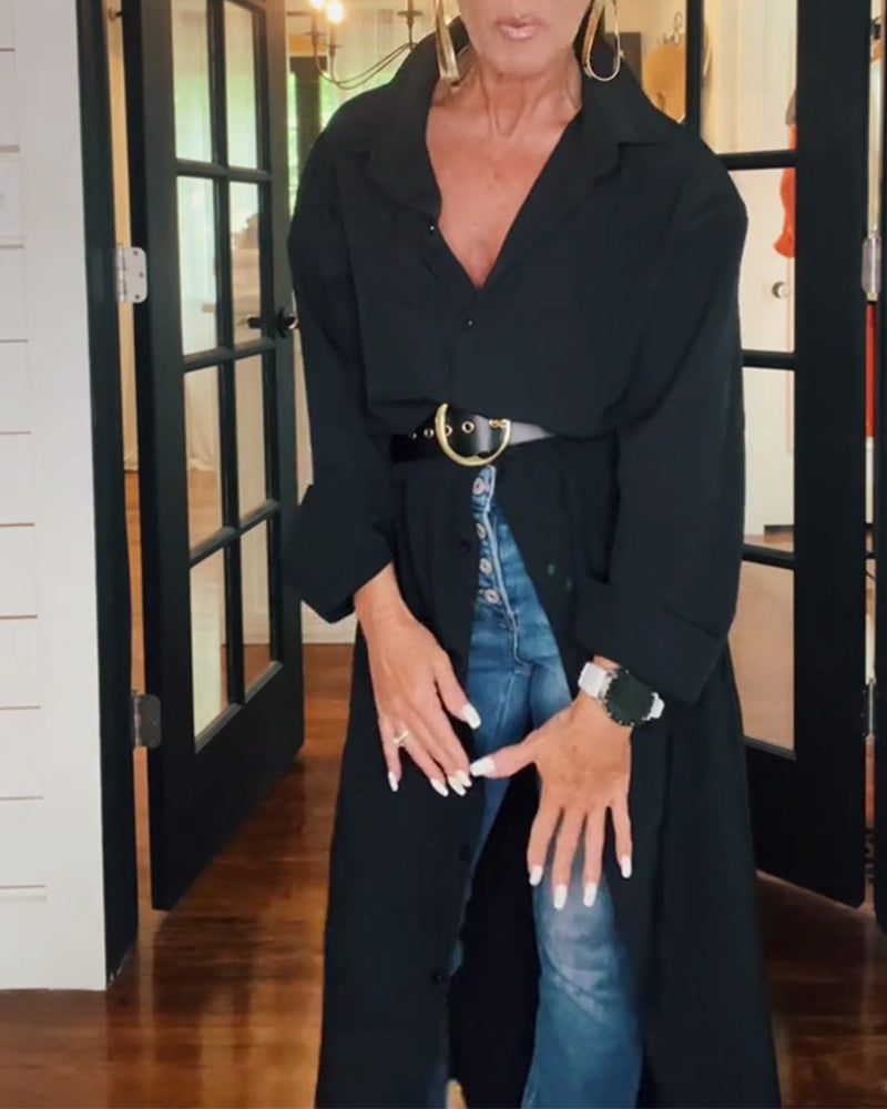 Chemise décontractée fendue à revers de couleur unie
