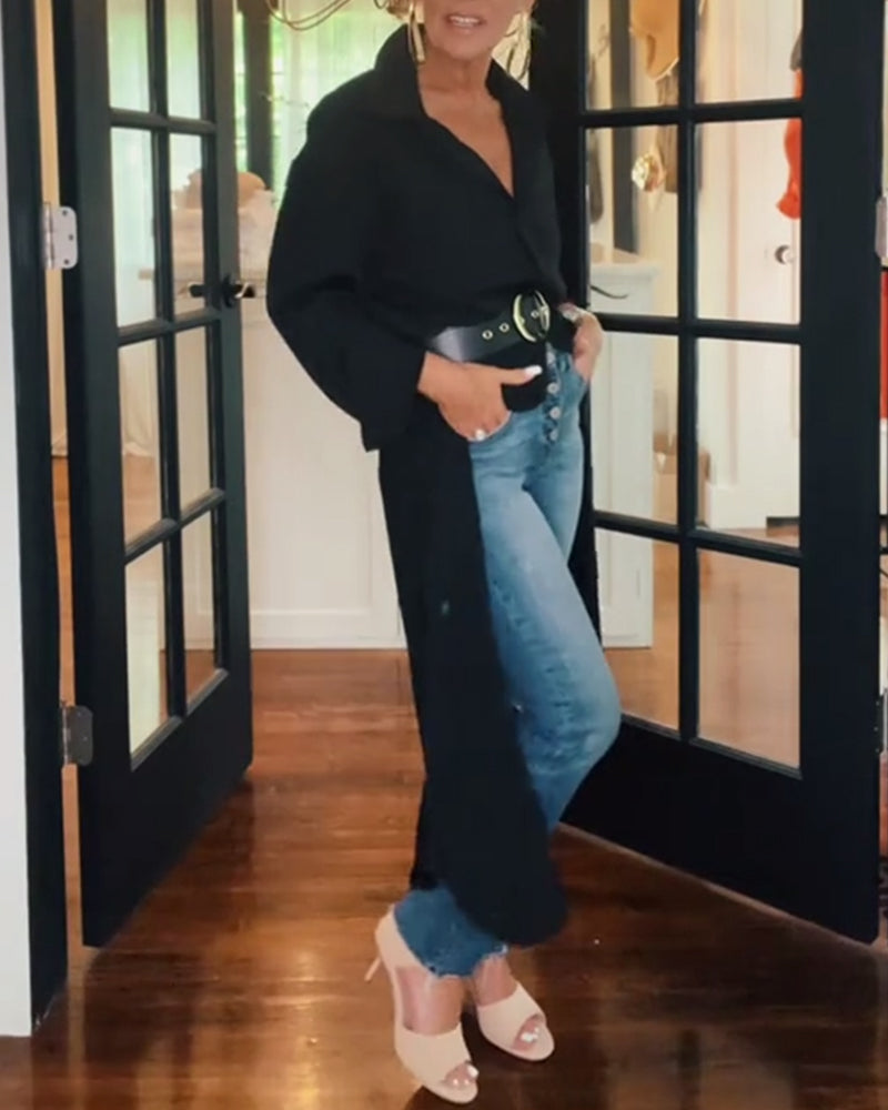 Chemisier ample de couleur unie à manches longues