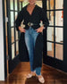 Haut col V boutonné dos manches 3/4