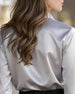 Chemise Scintillante À Col À Revers Et Manches Longues