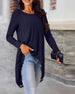 SPÉCIFICATIONS Type de la veste: Hauts Style: Décontracté Matériel: Mélange de coton Occasion: Quotidien Forme du col: Col en V Type du dessin: Couleur pure Type de la manche: Manches régulières Longueur de la manche: Manches longues Type d'ajustement: Habituel Saison: Automne,Hiver Détails: Irrégulière Contenu du colis: 1 x Haut TABLEAU DES T...