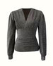 Chemisier tendance à manches lanternes et col en V de couleur unie