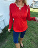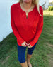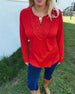 Chemisier tendance à manches lanternes et col en V de couleur unie