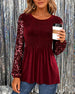 Haut Dentelle Col Rond Manches Longues