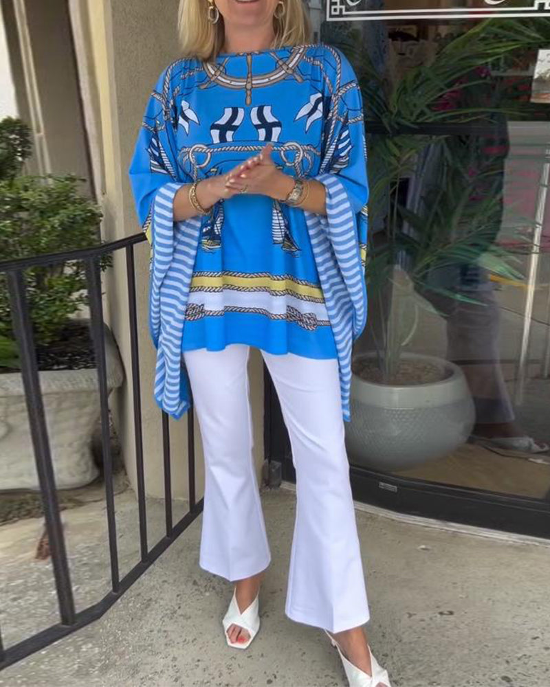 Blouse À Manches Longues Avec Imprimé Chauve-Souris Irrégulier