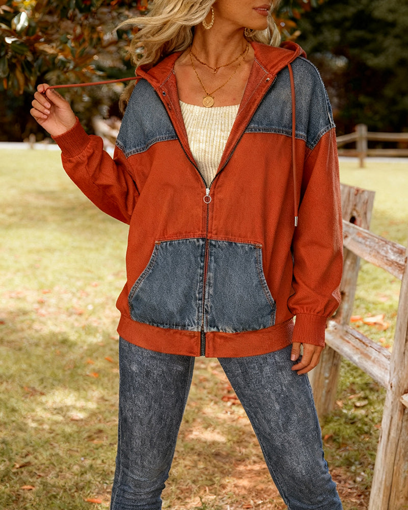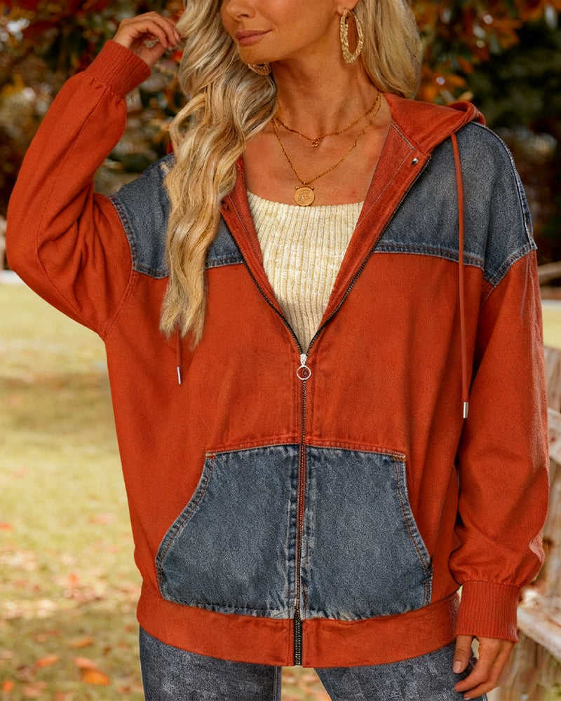 NOUV Icon1 Veste En Jean Patchwork À Capuche