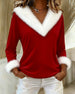 Haut pelucheux à col en V et imprimé sapin de Noël