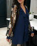 Chemisier À Manches Lanternes Avec Décolleté En V Et Paillettes